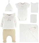 Zıbın :%100 Cotton Patikli Pantolon : %75 Cotton %25 SimŞapka : %100 CottonZarf Yaka Bady :%100 Cotton Battaniye : %100 Cotton